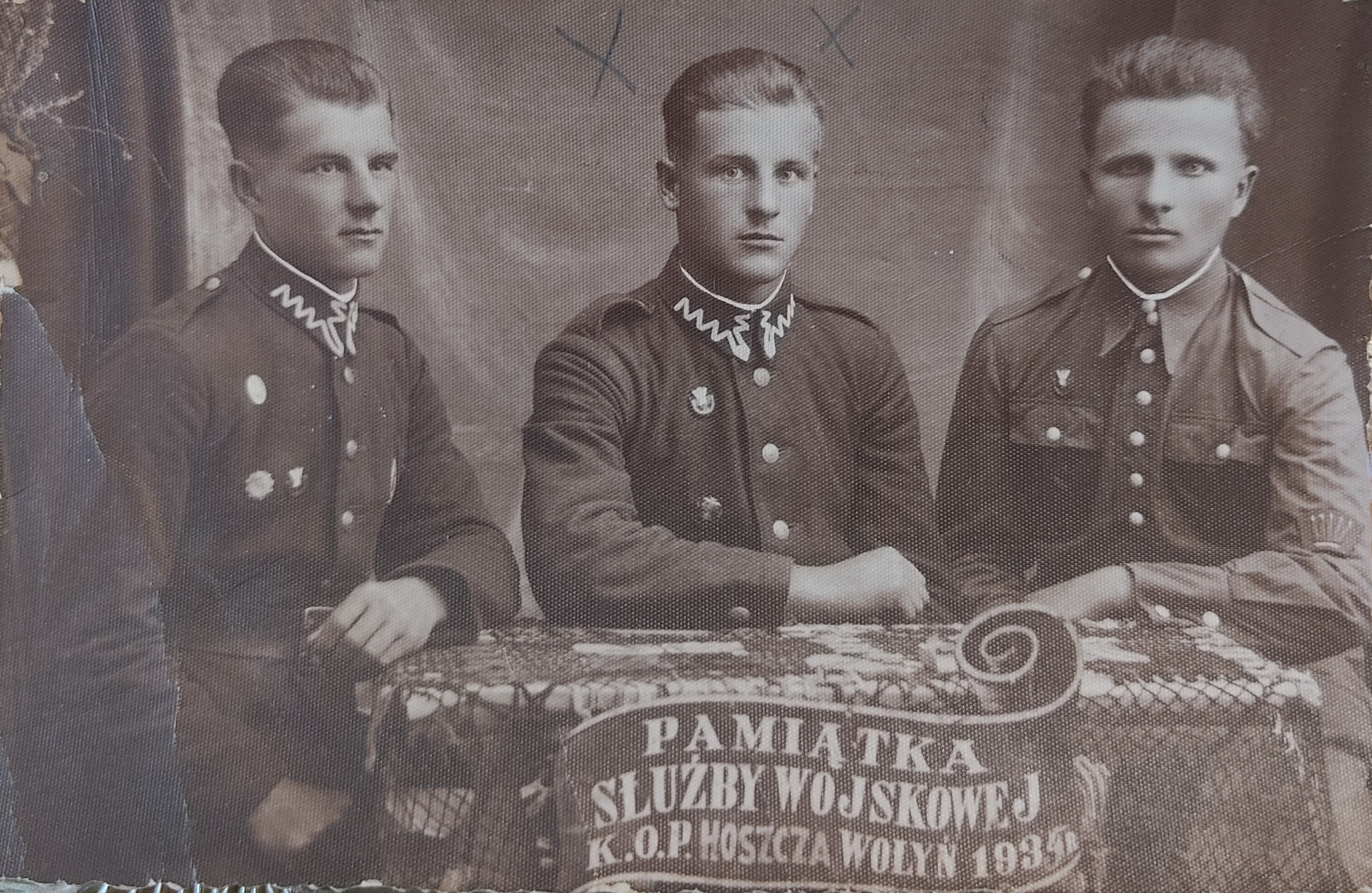 - Fot. 2. Porucznik Antoni Stachura (w środku). Pamiątka ze służby wojskowej w Korpusie Ochrony Pogranicza „Hoszcza” na Wołyniu w 1935 roku.